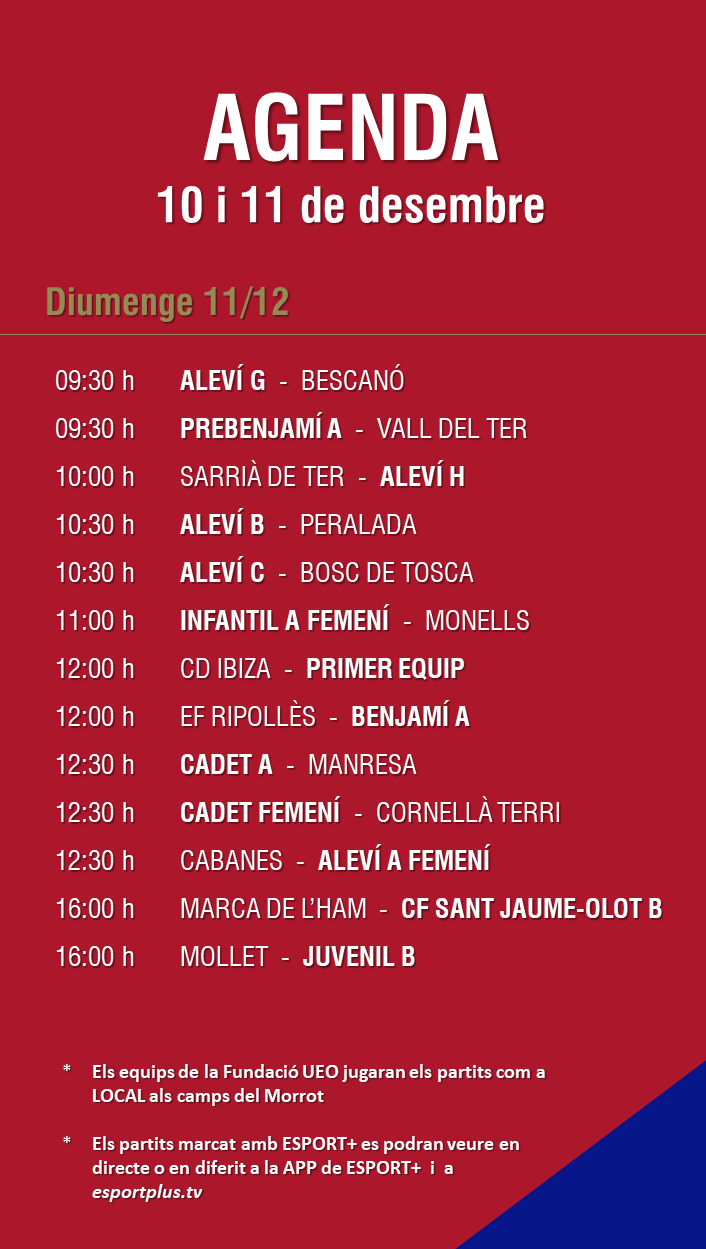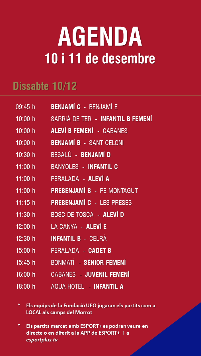 L’agenda de partits al FUTBOL BASE (10 i 11 desembre) 07 des. 2022Oriol Boix BufiasFutbol BASE, Notícies, Futbol FEMENÍ, Escola de FUTBOL, SECCIONS, General, Actualitat, Destacat0