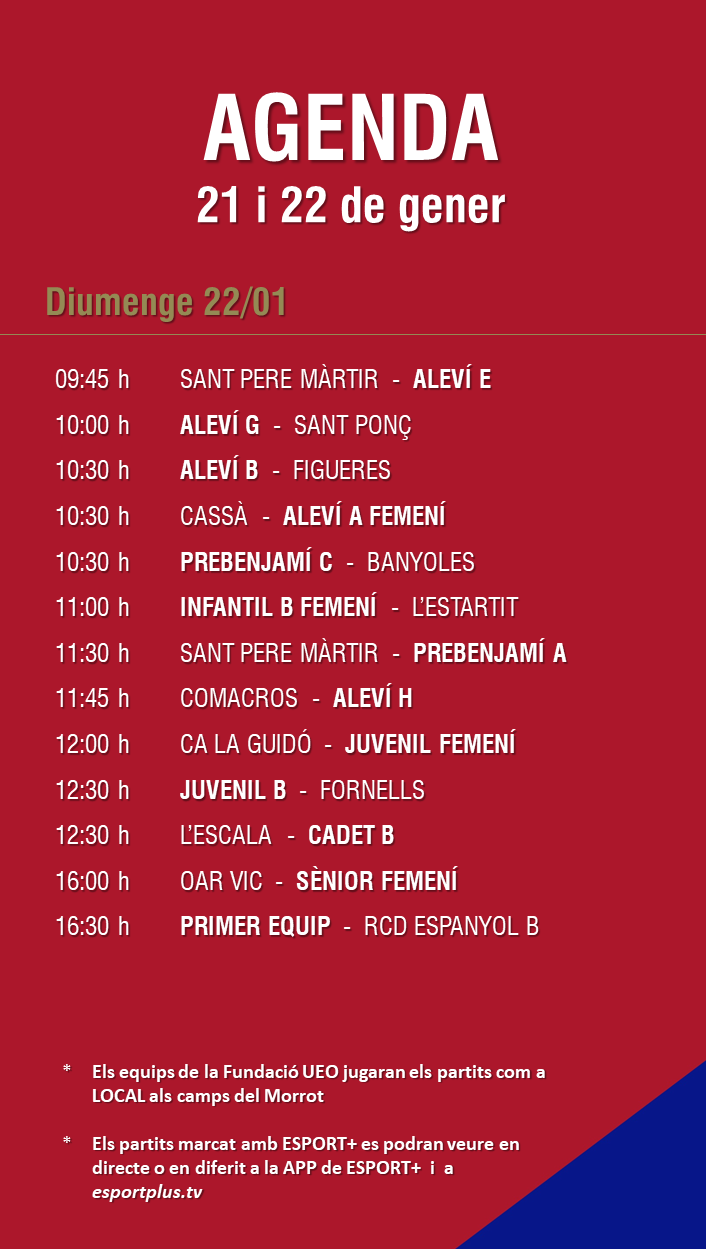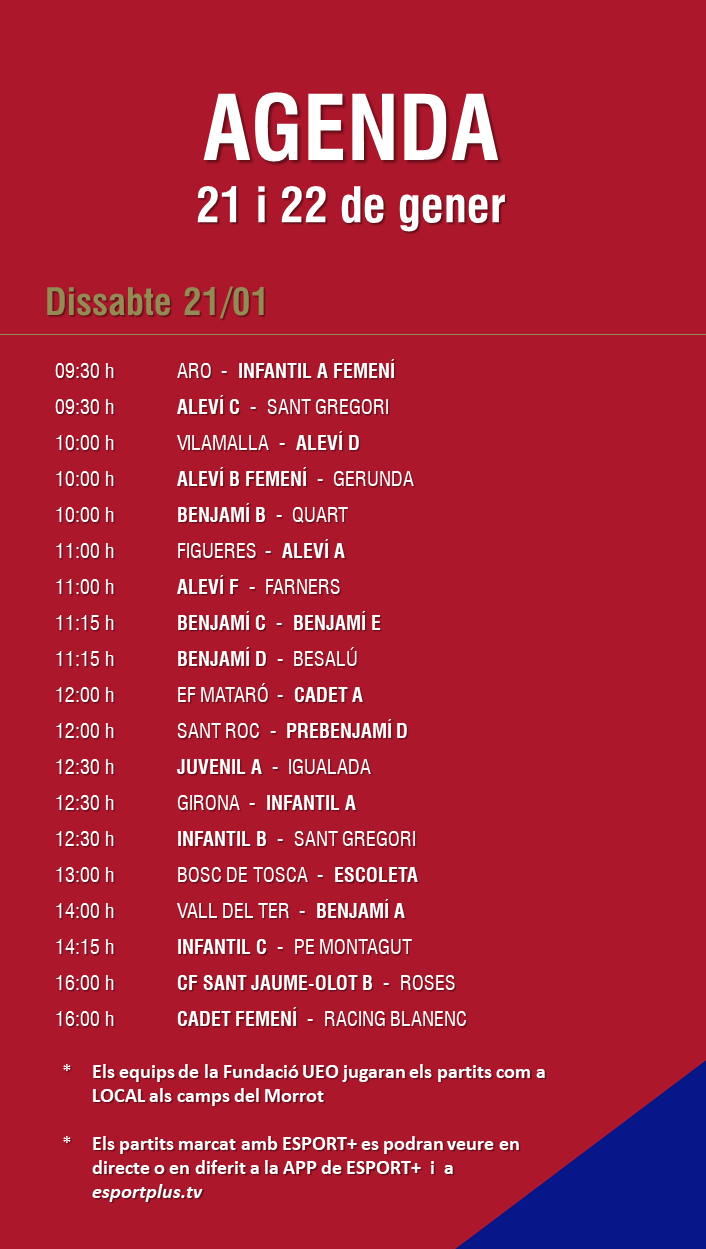 L’agenda de partits al FUTBOL BASE (21 i 22 gener) 17 gen. 2023Oriol Boix BufiasGeneral, Actualitat, Destacat, Futbol BASE, Notícies, Futbol FEMENÍ, Escola de FUTBOL, SECCIONS0