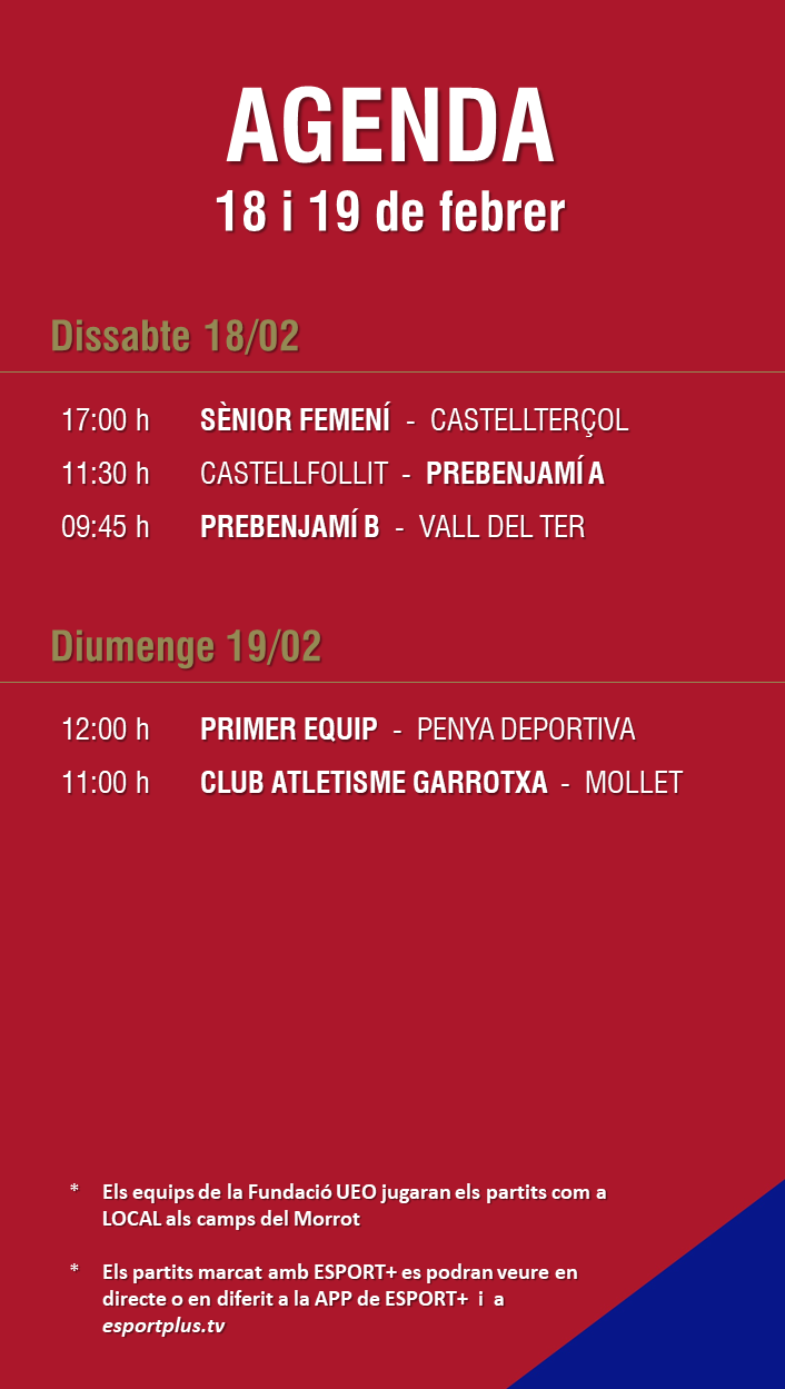 L’agenda de partits al FUTBOL BASE (18 i 19 febrer) 14 febr. 2023Oriol Boix BufiasFutbol BASE, Notícies, Futbol FEMENÍ, Escola de FUTBOL, SECCIONS, General, Actualitat, Destacat0