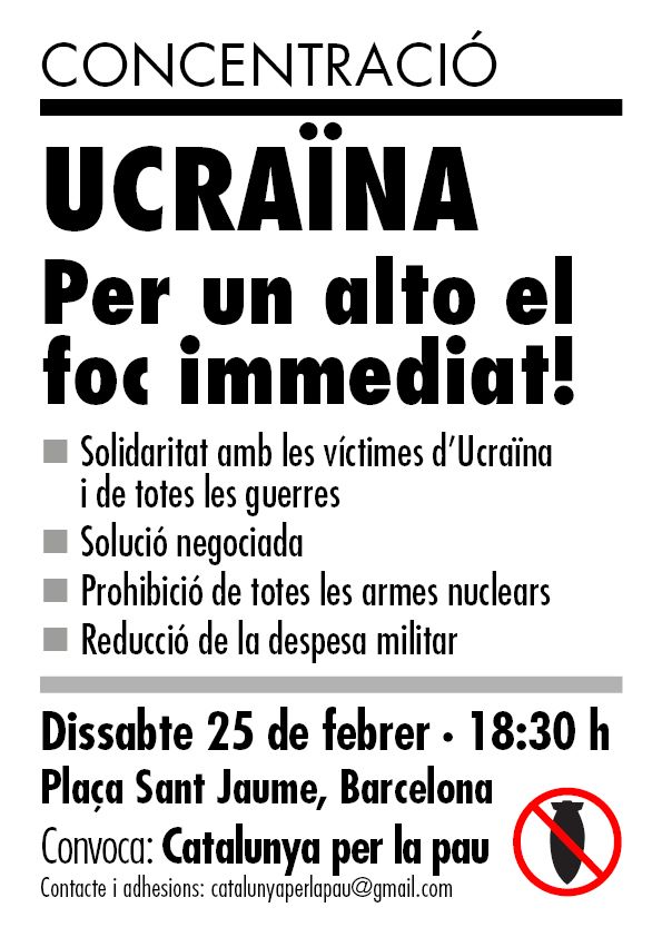 Des de la Unió Esportiva Olot ens adherim al manifest de Catalunya per la Pau i a la crida per la solidaritat amb el poble ucraïnès i amb les víctimes de tots els conflictes bèl·lics. Demanem que les nostres institucions assumeixin aquesta agenda de pau i treballin en tots els fòrums europeus i internacionals pel seu acompliment. La manifestació tindrà lloc aquest dissabte 25 de febrer a partir de les 18.30h a la Plaça Sant Jaume de la ciutat de Barcelona.