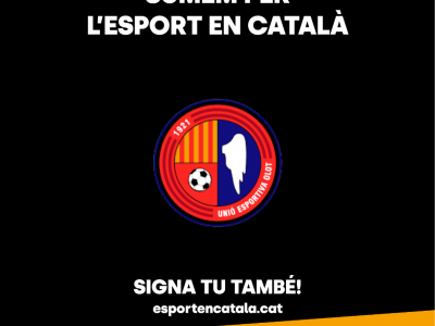 Des de la Unió Esportiva Olot ens sumem a la campanya d'Òmnium Cultura i la UFEC per a l'esport en català. Reivindiquem el català com a eina de cohesió social i autoestima col·lectiva. Arran del conveni amb Òmnium Garrotxa, des de la UEO hem començat a promoure l'ús del català als terrenys de joc, tant entre els jugadors com entre el públic i grups d'animació. Ho fem a través de la cultura de club i també amb missatges i cartells als camps de futbol, a més de difondre l'ús del català en visites a les escoles i accions en mitjans de comunicació i amb empreses patrocinadores. L'esport treu la llengua i l'Olot, també!