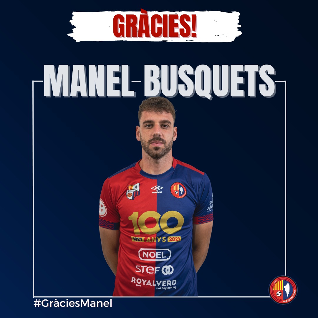 El davanter de Caldes de Montbui es desvincula i no formarà part de la plantilla de la Unió Esportiva Olot a Tercera Federació. Busquets ha estat un dels jugadors destacats del curs amb 31 partits i 3 gols anotats en el seu debut a la categoria. Velocitat, potència i lluita incansable en les diverses posicions ofensives. És la cinquena baixa després de Xumetra, Forgas, Aimar i Eloi Amagat. Moltes gràcies i bona sort en el futur, Manel!