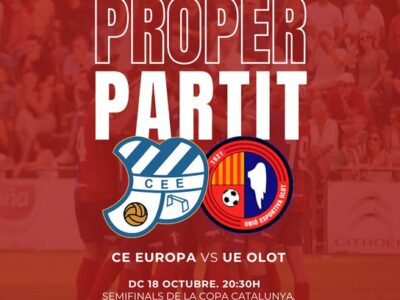 La Unió Esportiva Olot visita aquest dimecres (20.30h, BTV) el Nou Sardenya de Gràcia per enfrontar-se al CE Europa en les semifinals de la Copa Catalunya. Un premi a la trajectòria brillant d'aquest estiu, on els de Pedro Dólera ja han superat dos conjunts de categoria superior. Una cita amb la història davant d'un rival que ha començat la lliga de Segona RFEF en molt bona forma.