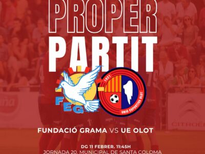 La Unió Esportiva Olot buscarà la cinquena victòria consecutiva en la seva visita al camp de la Fundació Esportiva Grama (diumenge, 11.45h). Els colomencs han canviat de dalt a baix la plantilla en la finestra hivernal per acostar-se a les places de play-off, ara a dos punts de distància. Pedro Dólera, encara amb les baixes d'Arnau Forés, a prop de rebre l'alta mèdica, i de Bruno Perone, demana maduresa i personalitat als seus homes en un escenari ja conegut on a l'estiu vam passar de ronda a la Copa Catalunya.