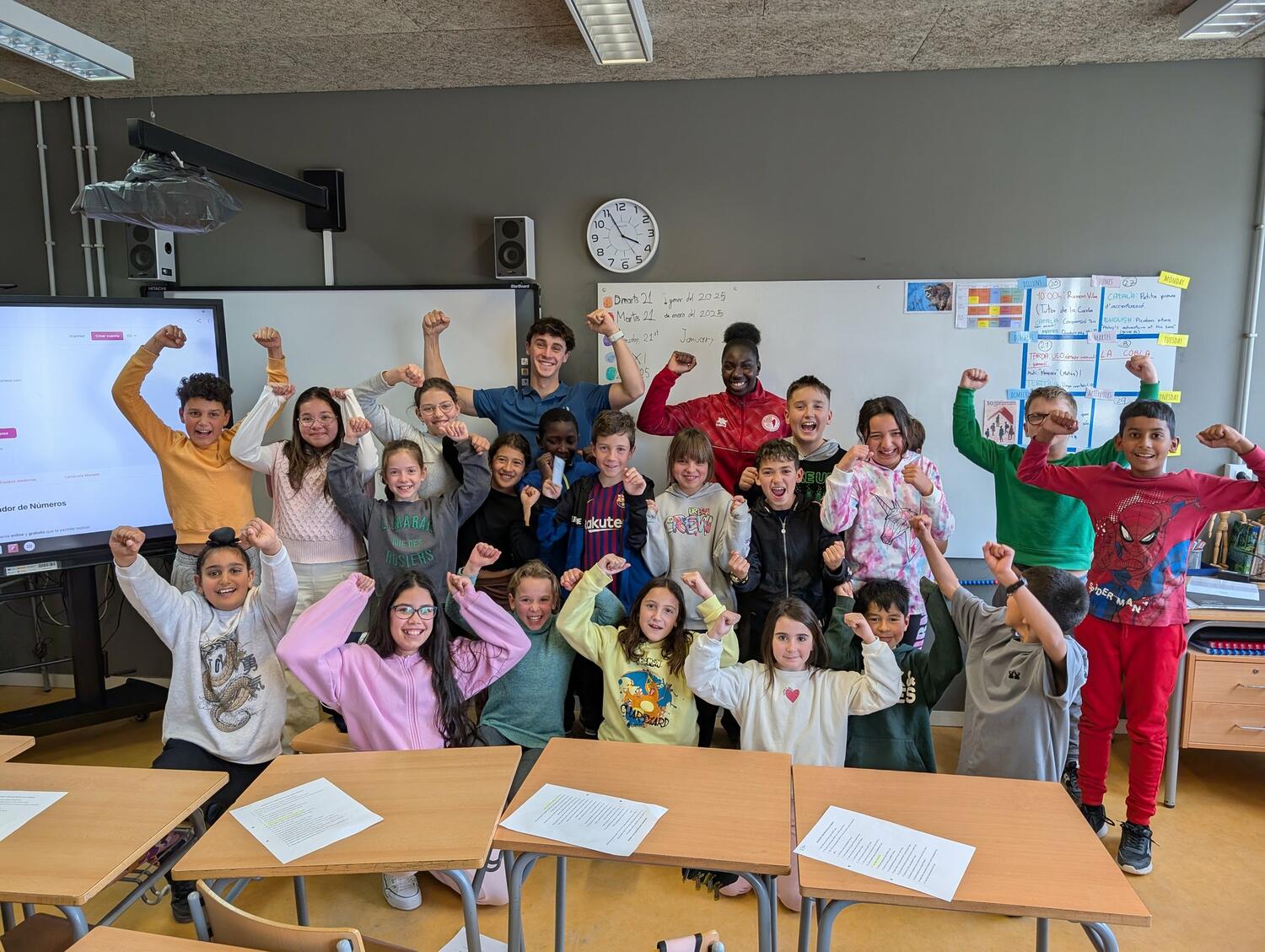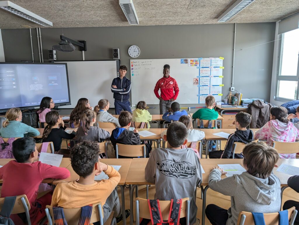 La Unió Esportiva Olot segueix la ruta pels centres educatius de la ciutat, aquest dimarts amb els alumnes de 5è de Primària de l’Escola El Morrot. Acompanyats de Pau Juvanteny “Juvi”, defensa torellonenc de 24 anys del Sènior Masculí, i d’Aisa Bajaha, migcampista olotina de 17 anys del Sènior Femení. Preguntes, rialles, música i el sorteig de la samarreta de l’Olot amb en Martí com a afortunat. Com a premi per aquesta bona estona, esteu tots convidats al partit d’aquest diumenge a l’Estadi entre la UEO i l’Espanyol B. Amb vosaltres serem més forts!