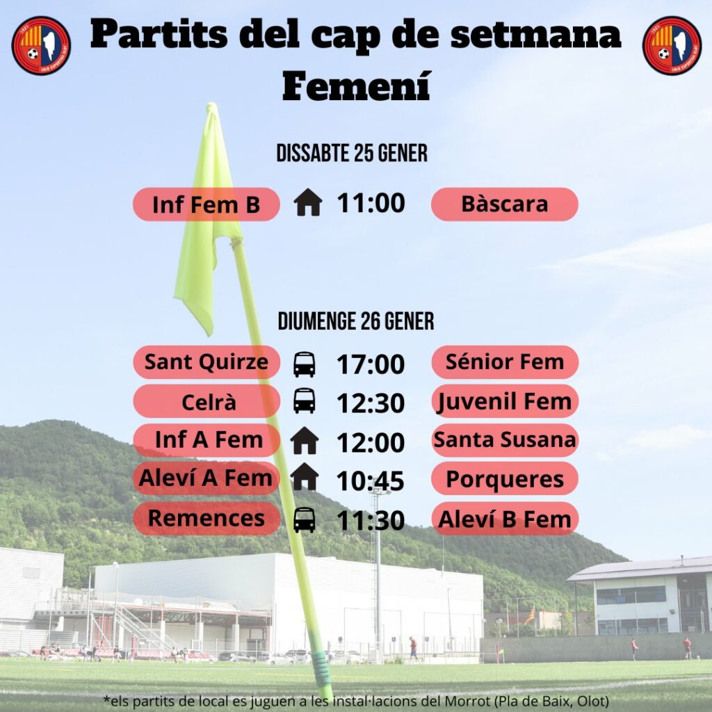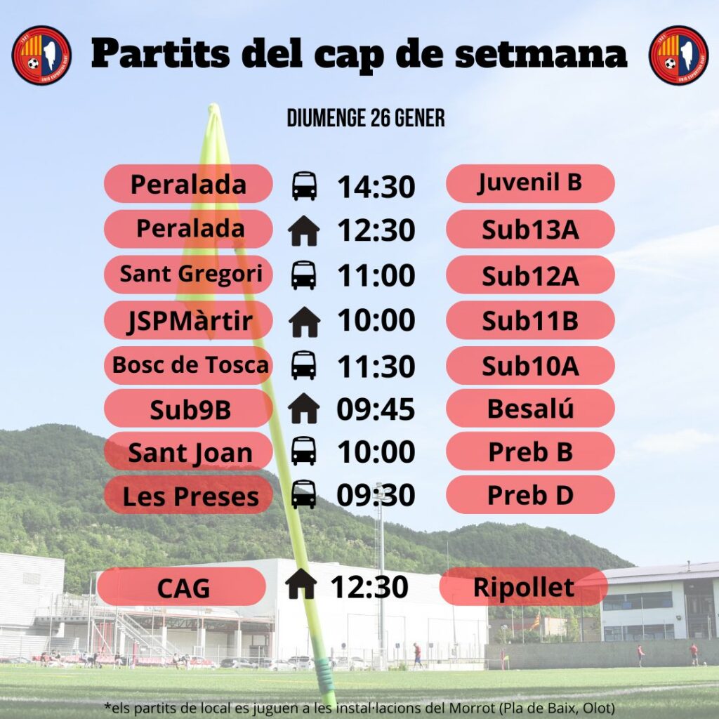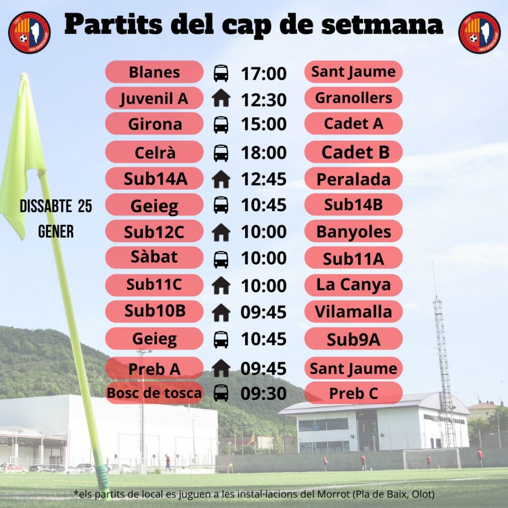 Agenda de partits al FUTBOL BASE (25 i 26 de gener) 23 gen. 2025Oriol Boix BufiasGeneral, Actualitat, Destacat, Notícies0