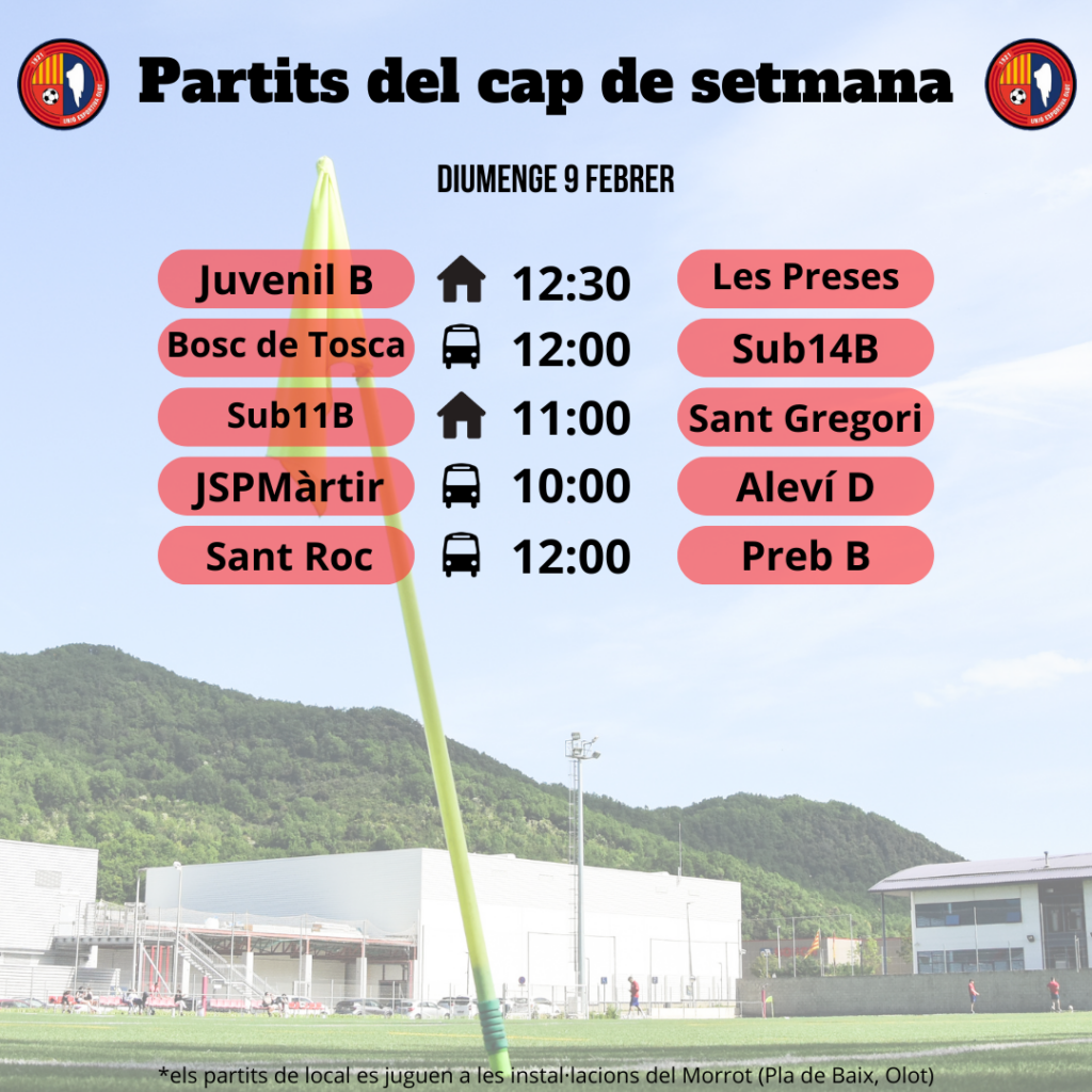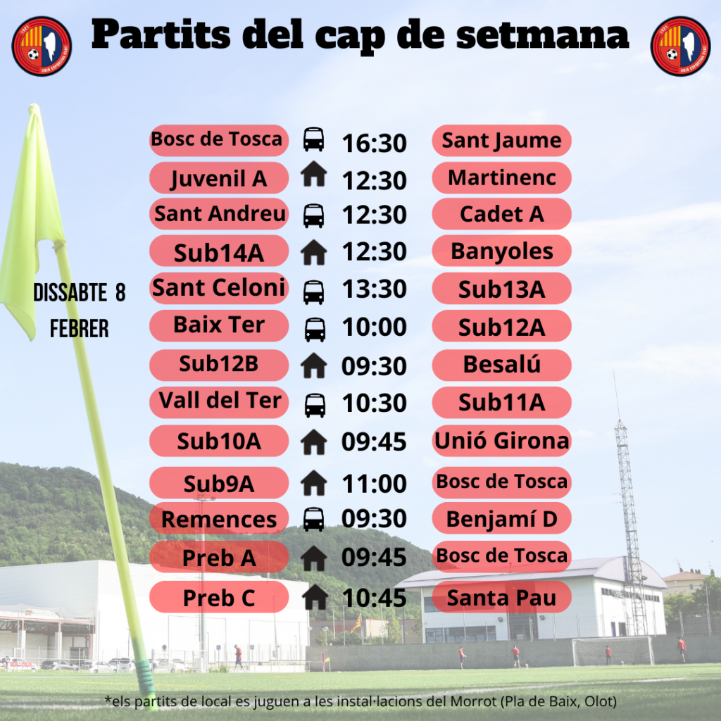 Agenda de partits al FUTBOL BASE (8 i 9 de febrer) 06 febr. 2025Oriol Boix BufiasActualitat, Destacat, Notícies, General0