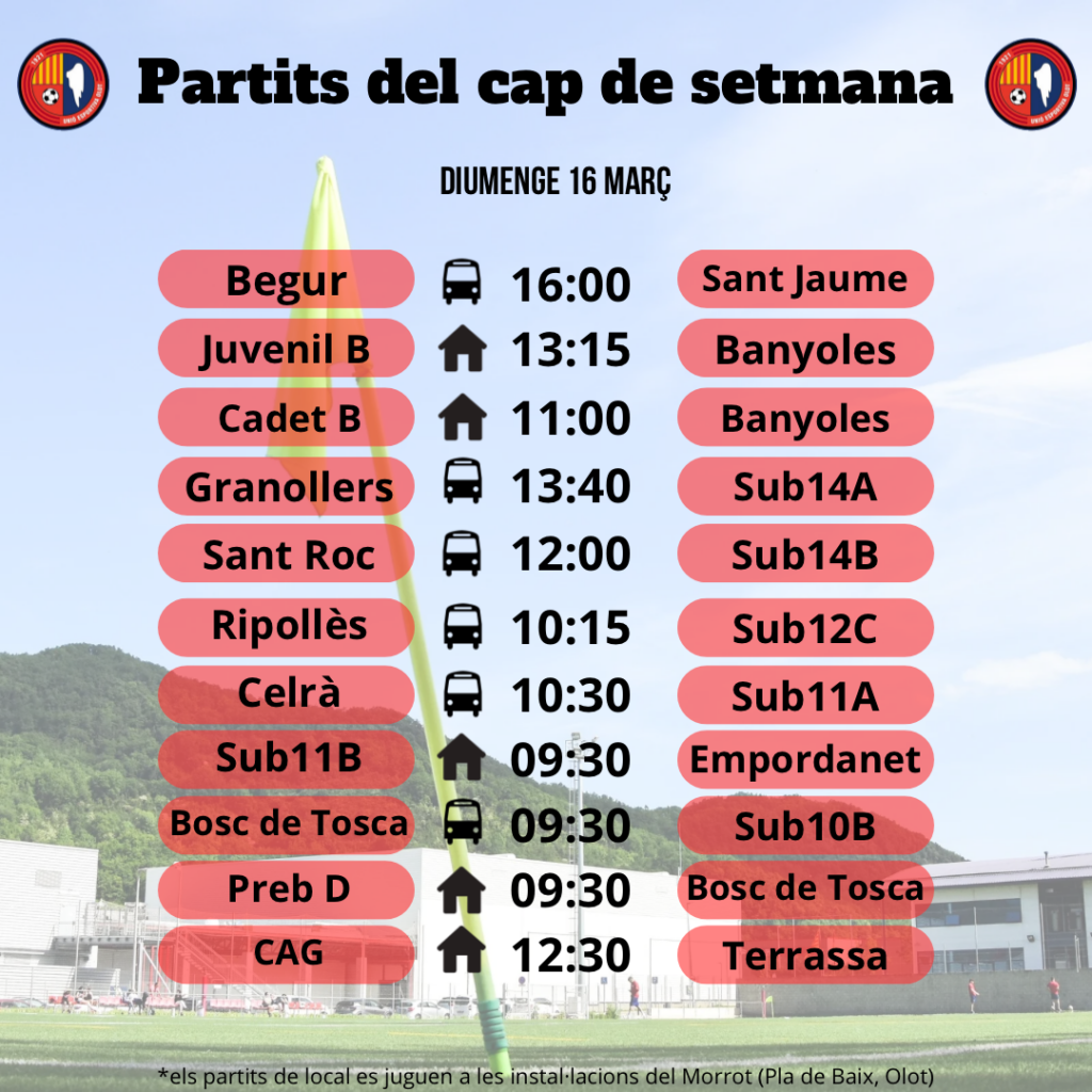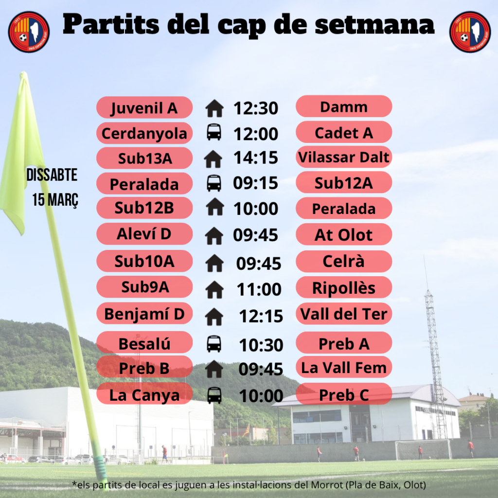 Agenda de partits al FUTBOL BASE (15 i 16 de març) 13 març 2025Oriol Boix BufiasGeneral, Actualitat, Destacat, Notícies0