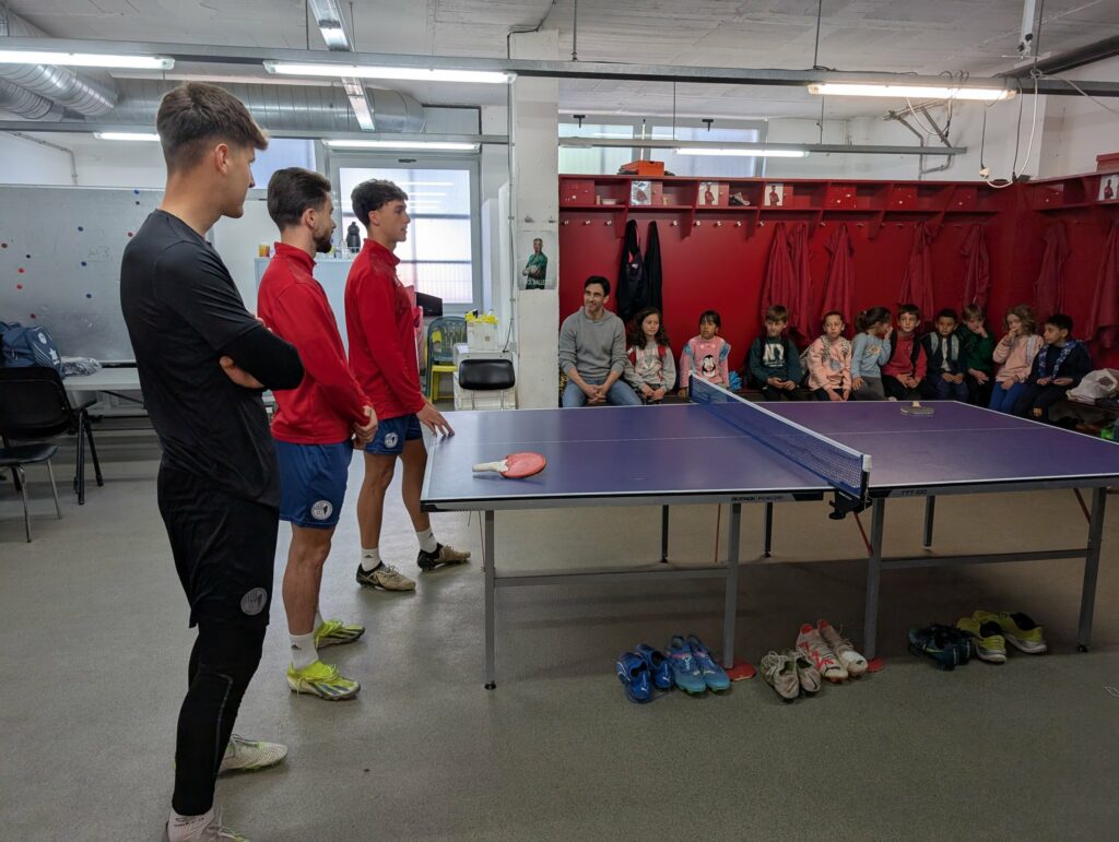 Aquest dimarts al matí hem comptat amb la visita dels alumnes de 2n de Primària de l’Escola Petit Plançó de la ciutat d’Olot. Hem descobert tots els racons de l’Estadi Municipal, des dels vestidors fins a la sala de premsa, passant pel gimnàs i acabant amb quatre tocs sobre la gespa. Ens hi han acompanyat tres jugadors del primer equip: Pau Salvans, Pau Juvanteny “Juvi” i Jan Danés. Petits grans moments en bona companyia, tot i estar de vacances els futbolistes han complert amb aquesta nova activitat social programada pel club. Fins la pròxima, Petit Plançó!