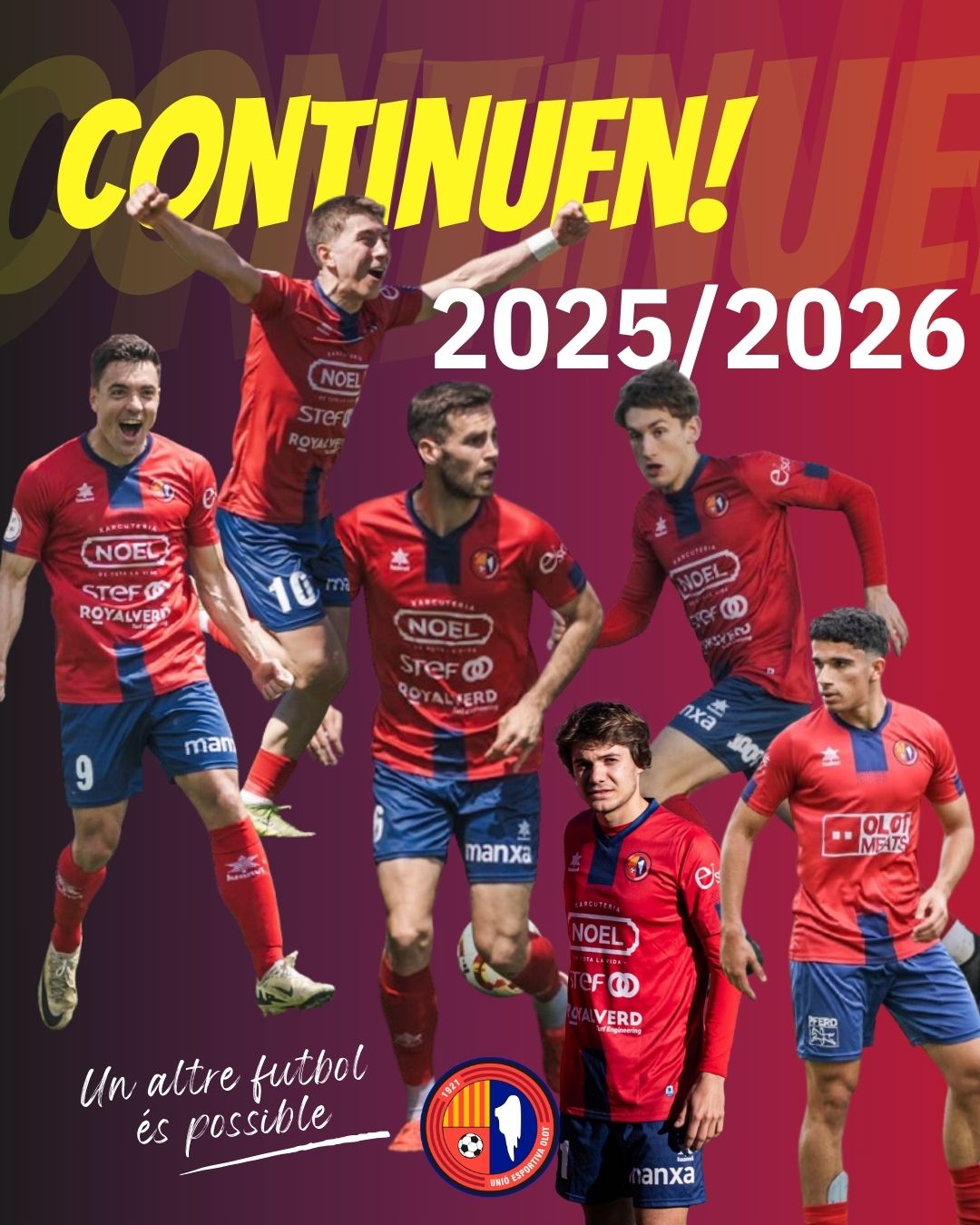 Són Marc Mas, Uri Ayala, Guillem Terma, Sergi Marcillo, Marc Comamala i Martí Puigbert. El silenc, amb més de vuitanta gols de vermell, complirà el seu sisè curs en dues etapes a la Garrotxa. Ayala, un puntal a la rereguarda, defensarà la nostra samarreta per cinquena temporada seguida, mentre que Terma, format a casa, viurà ja la quarta campanya al primer equip. Marcillo, la revelació d’aquest curs, s’ha guanyat la continuïtat al lateral dret i Marc Comamala, que ha ascendit amb el filial, buscarà fer-se un lloc a Segona RFEF. Mateix propòsit que el migcampista juvenil Martí Puigbert, que ja ha gaudit de minuts de qualitat aquesta temporada. Seguim junts!