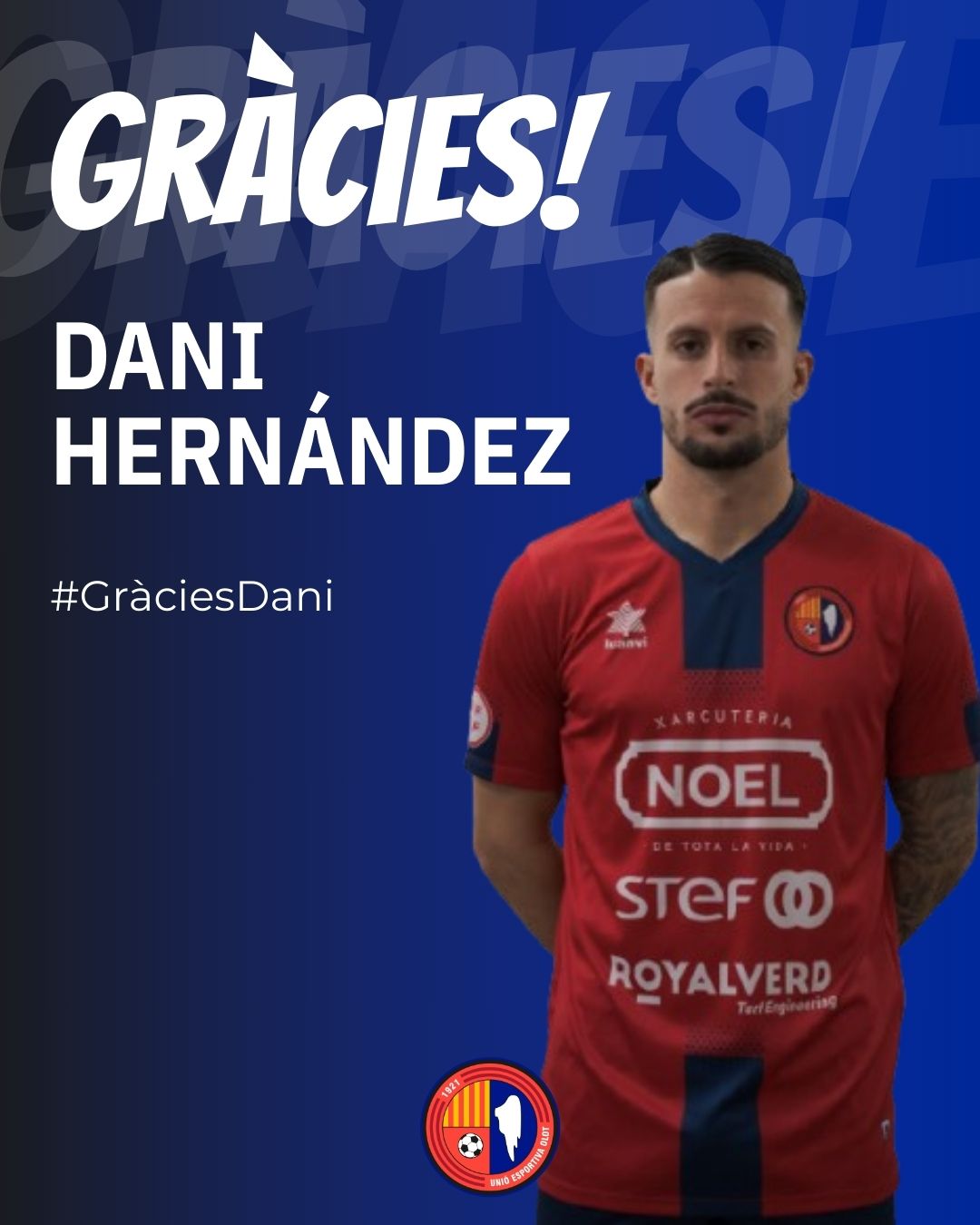 El defensa de Castelldefels, que havia arribat al mercat d’hivern procedent de la UD Melilla, no tindrà continuïtat a les files de la Unió Esportiva Olot. En aquests mesos ha jugat 6 partits, 4 com a titular. Moltes gràcies i bona sort, Dani!