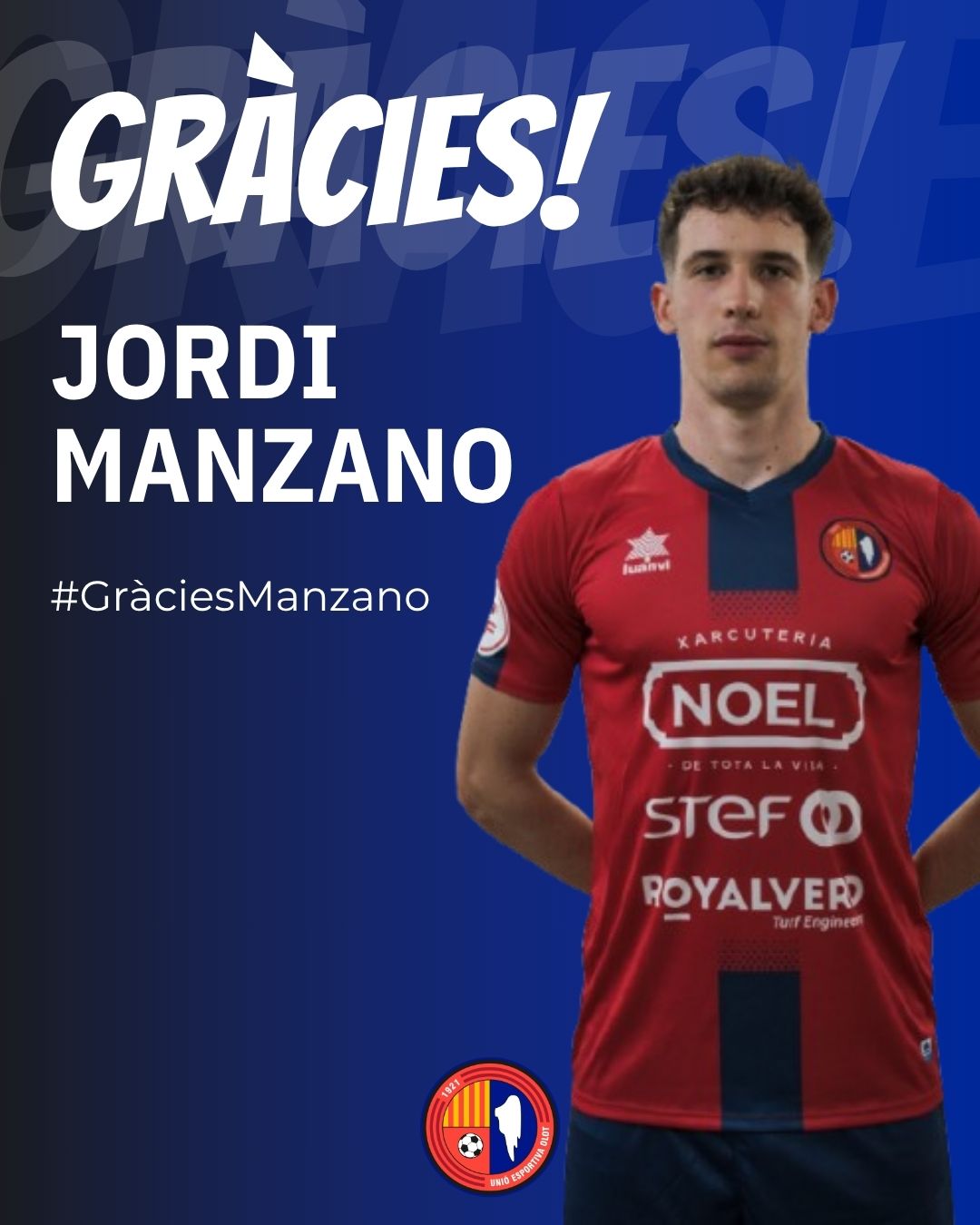 Tot i tenir oferta de renovació sobre la taula, el migcampista amerenc de 22 anys deixa la Unió Esportiva Olot després de set temporades al club. Va arribar quan era cadet de segon any, va pujar de Preferent a Lliga Nacional amb el Juvenil A, es va acabar de formar al CF Sant Jaume-Olot B i tot seguit ha estat tres cursos al primer equip (dos a Segona RFEF i un a Tercera). Després de tenir poca continuïtat sobre la gespa, Manzano buscarà més minuts i protagonisme en una altra destinació. Molta sort, Jordi! Aquí sempre tindràs la porta oberta!