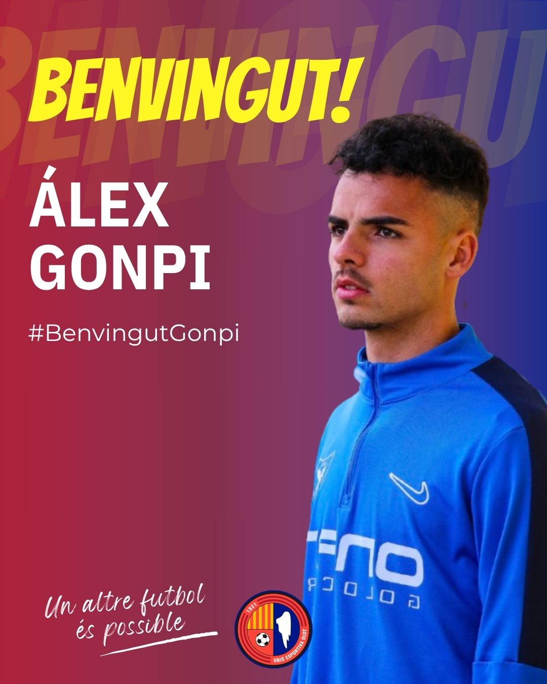 El futbolista masnoví (18-03-2000), germà del nostre ex-jugador Óscar Gonpi, es suma al projecte de la Unió Esportiva Olot i representa la sisena cara nova per al nou curs. Format als planters de RCD Espanyol i UE Cornellà, va destacar a Tercera Divisió en clubs com UE Vilassar i Girona B abans de fer el salt a Primera RFEF. Dues temporades a les files de la UE Cornellà (8 gols) i el curs passat a Segona RFEF defensant els colors del CE Sabadell, fins al mercat d’hivern, i UCAM Murcia (34 partits en total). Extrem ràpid amb molta personalitat i habilitat encarar els defenses rivals, també amb bon tir des de la distància i joc associatiu. Benvingut al club, Álex! La teva sort serà la nostra!