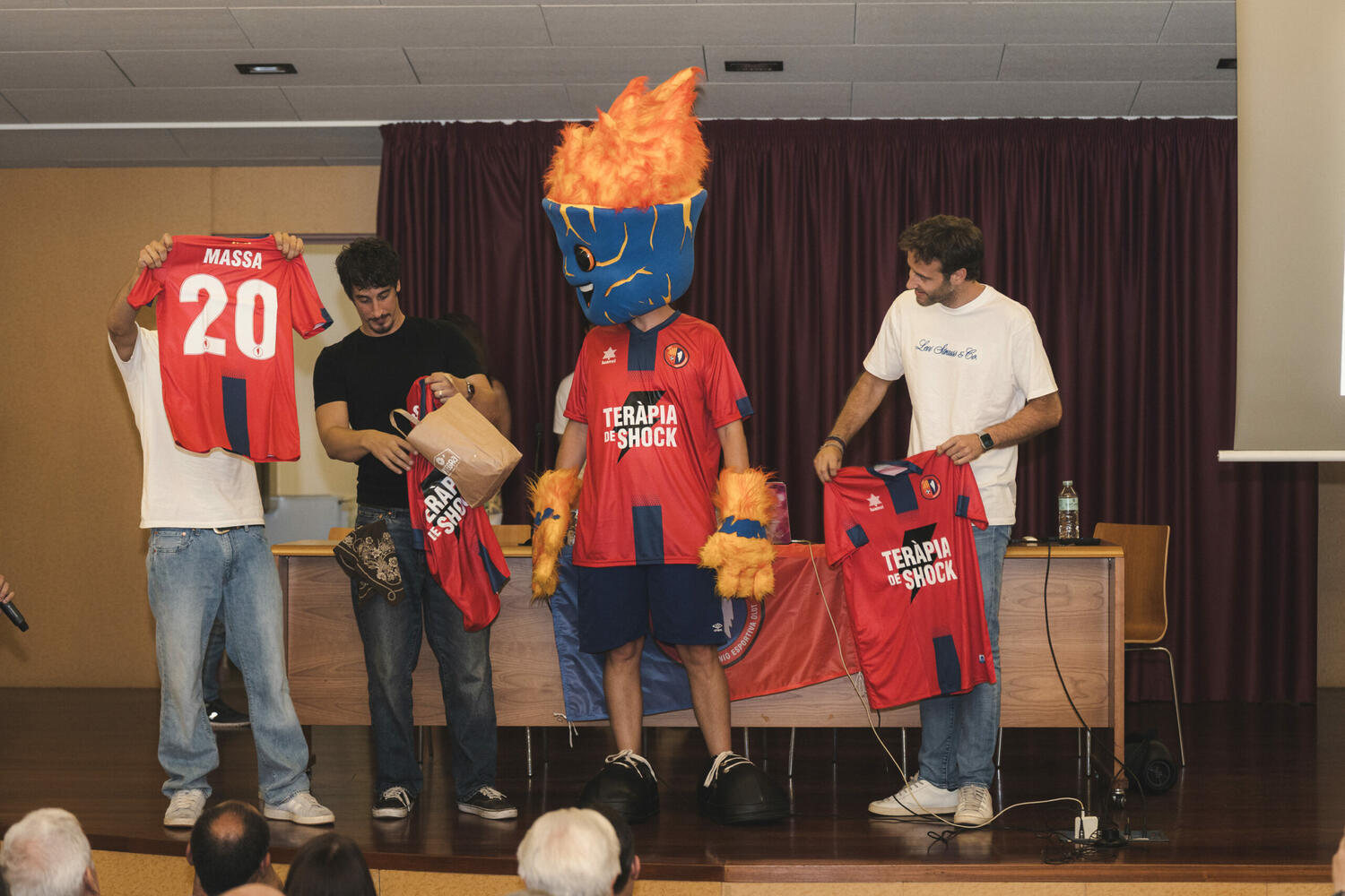 Conveni de col·laboració de la UE Olot amb el grup olotí Teràpia de Shock