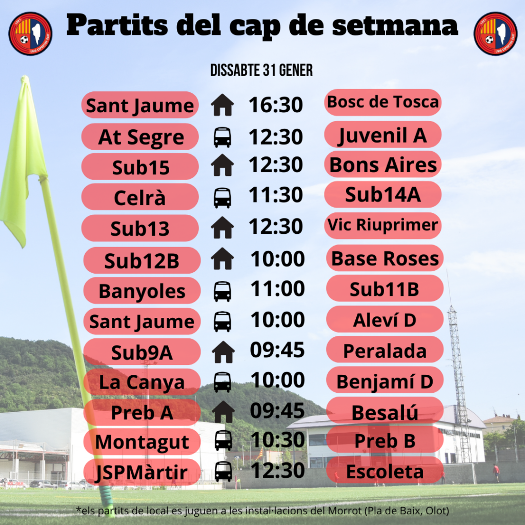 L’agenda de la jornada al FUTBOL BASE (31 de gener i 1 de febrer) 28 gen. 2026Oriol Boix BufiasGeneral, Actualitat, Destacat, Notícies0