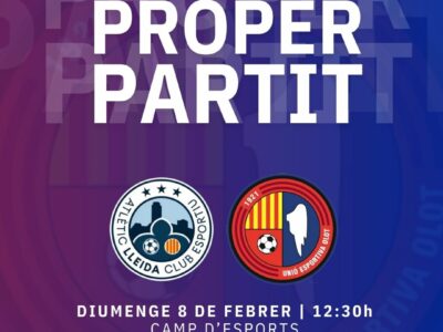 La Unió Esportiva Olot té una cita transcendental aquest diumenge al migdia (12.30h, La Xarxa+) al Camp d'Esports de Lleida. Allà el rebrà un Atlètic Lleida que ha renascut des de l'arribada de Jordi López amb dos triomfs consecutius que l'acosten a les posicions de permanència. Roger Vidal demana als seus homes la mateixa intensitat i exigència dels últims partits per aconseguir la segona victòria seguida com a visitant. El jove Oriol Marty s'afegeix a les baixes de Guiu, Puigbert i Fuentes.