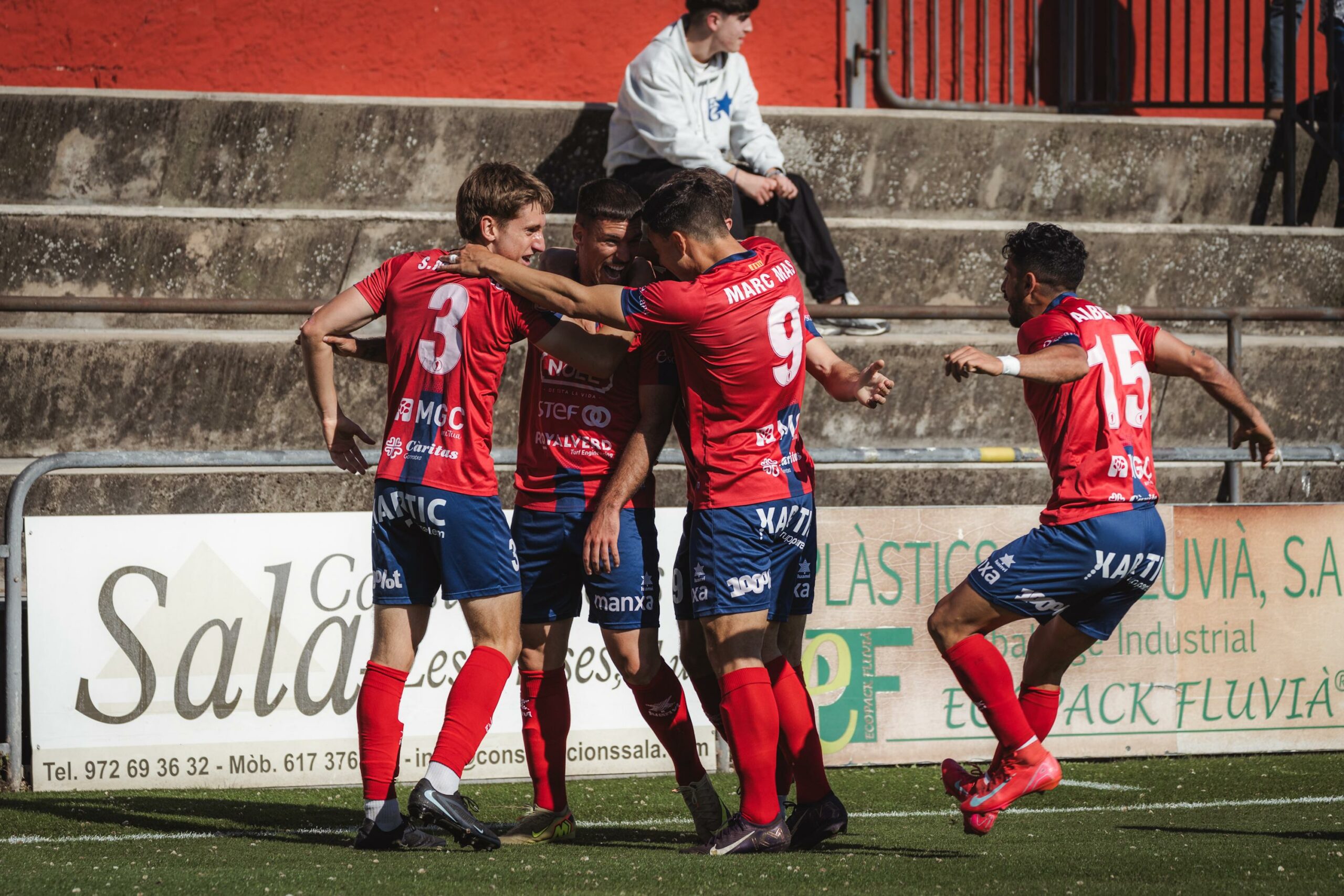 UE OLOT: Ballesté, Marcillo, Robert, Ayala, Martí Soler, Marc Mas (Barrés, 76’), Enri (Carlos Martínez, 31’), Pedro ©, Albert, Arumí i Salvans (Farrés, 93’)