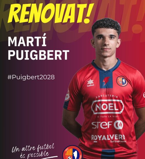 El jove migcampista de Ventalló, que compleix el seu primer any d’amateur a la Unió Esportiva Olot, s’ha consolidat a Segona RFEF i aquesta setmana ha signat l’ampliació del seu contracte per a dues temporades més. Format entre el FC L’Escala i el Girona FC, va arribar al planter del nostre club l'any 2020 i va començar a destacar en l’etapa juvenil, pujant amb el primer equip i fins i tot marcant a Tercera RFEF. El curs anterior ja va disputar tres partits a la categoria i enguany en porta nou, vuit com a titular en l'onze de Roger Vidal. Puigbert, amb 19 anys, és un mirall per a les noves generacions i un premi a la constància i al treball diari. Enhorabona, Martí!