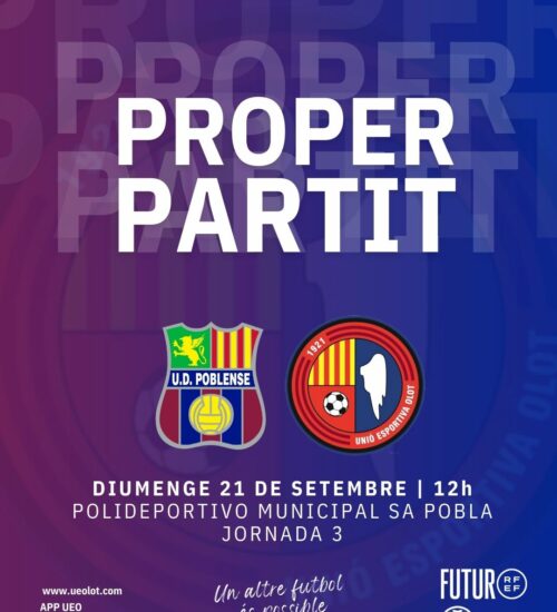 Tercera jornada consecutiva sense conèixer la derrota per la Unió Esportiva Olot, que treu un punt de Sa Pobla i segueix amb la dinàmica positiva. Tot i les bones ocasions d'Albert López, Marc Mas i Andreu Guiu, els de Roger Vidal no han pogut perforar la porteria contrària però mantenen la solidesa defensiva davant de la UD Poblense. A destacar, els primers minuts a la lliga del migcampista garrotxí Oriol Marty.