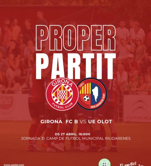 Després de quedar campió de lliga i celebrar l'ascens a Segona Federació, la Unió Esportiva Olot rep aquest dimecres (17h) el FC L'Escala en el penúltim partit a l'Estadi Municipal. Els d'Aday Benítez, revelació del curs amb un Pimentel en estat de gràcia, mantenen opcions intactes d'entrar al play-off, igualats amb el Prat, que és cinquè classificat. Els olotins volen tancar una temporada amb números de rècord i compartir aquest nou èxit amb tota l'afició que no va poder anar a Riudarenes.