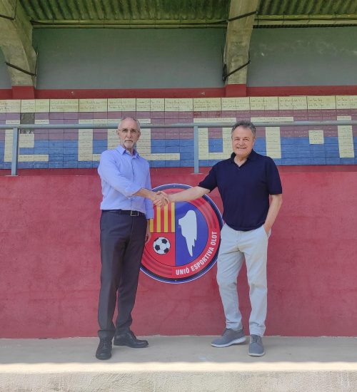 Aquest dilluns s'ha presentat l'acord de patrocini entre la Unió Esportiva Olot i MGC Mutua, entitat asseguradora barcelonina sense ànim de lucre que lluïrem a la part dorsal de la samarreta del primer equip. El president Joan Agustí ha destacat la vessant social i solidària de MGC Mutua, mentre que el vicepresident Enric Vila ha recalcat la importància dels patrocinadors en aquest projecte de valor compartit.