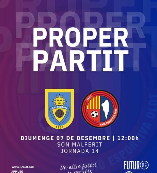 La Unió Esportiva Olot es desplaça a Mallorca amb l'objectiu d'encadenar la segona victòria consecutiva i treure el cap a la part noble de la classificació. Serà aquest diumenge (12h) contra el CE Andratx, conjunt que ha fet valer el factor camp per tombar rivals de prestigi. En aquest cas, però, l'escenari serà Son Malferit, on abans hi jugava l'Atlètic Balears. Roger Vidal, que torna on va començar tot, no podrà comptar amb Maffeo ni Puigbert, sancionats, i té el dubte del lateral Sergi Marcillo.