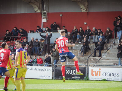 La Unió Esportiva Olot trenca la bona dinàmica en el derbi gironí en un partit condicionat per les decisions arbitrals. Dos penals en contra, faltes decisives no xiulades i un reguitzell de targetes que han minvat les esperances d'uns olotins que s'havien avançat amb gol de Martí Soler en acció a pilota parada. A la represa, el Girona B ha tingut més encert i amb certa polèmica ha remuntat el marcador amb dianes de Garrido, Sarasa, Mario i Gibi. Els resultats de la jornada apropen a dos punts la promoció de descens abans de rebre l'Andratx a l'Estadi.