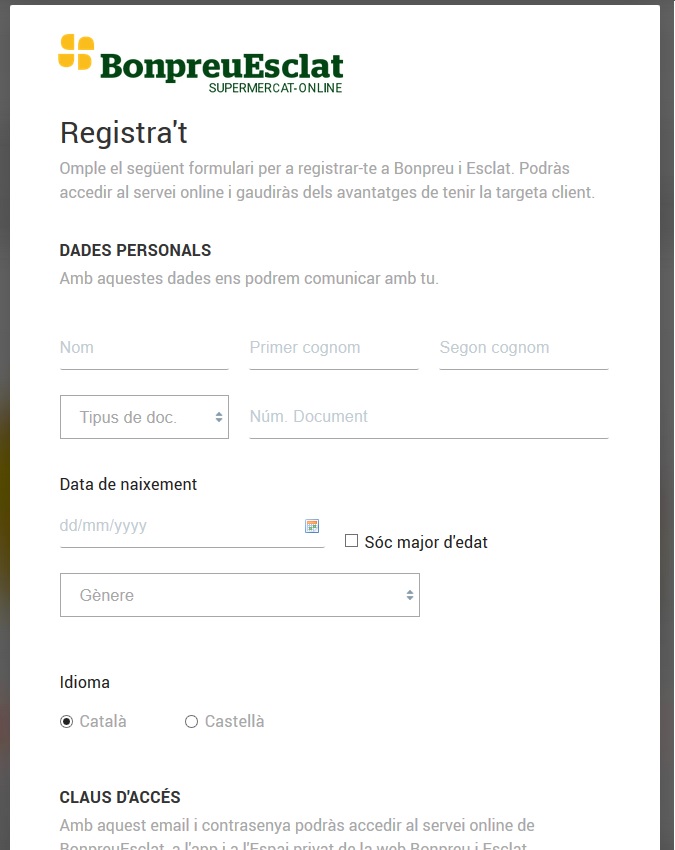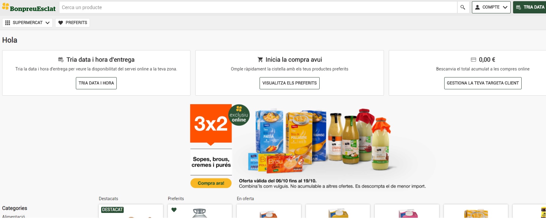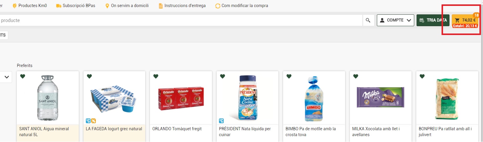 4. Un cop completat el procés d’inscripció / registre, podrà començar a seleccionar els productes que vol comprar: